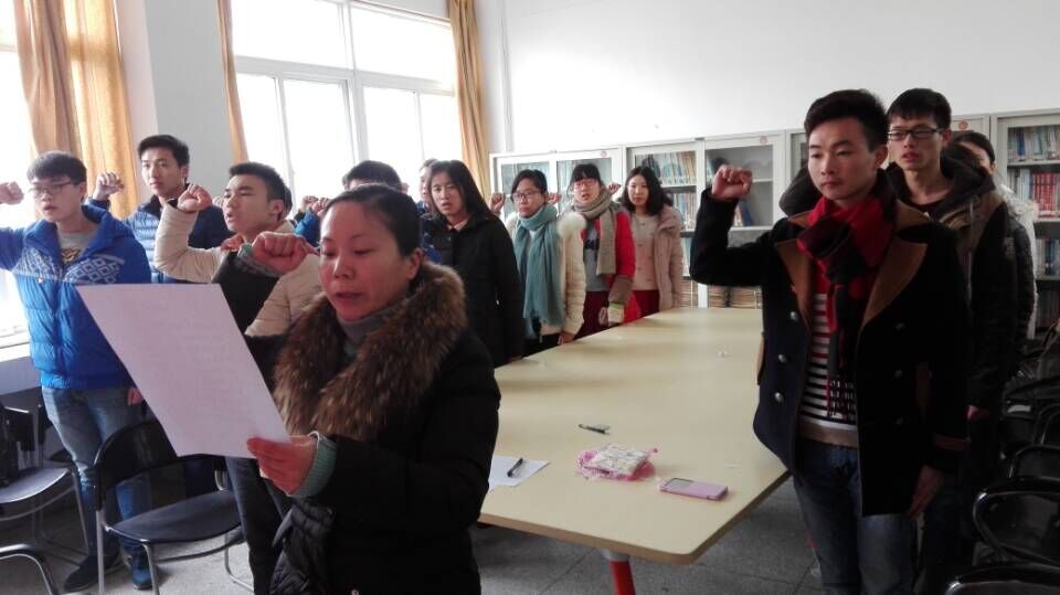 2015年12月18日下午,化学与环境工程学院新党员入党宣誓仪式在院会议室隆重举行。参加此次活动的有院学工办主任方美华老师、研究生党支部书记宋诗伟老师、学生第二党支部书记张娜老师和学生第三党支部书记胡艾平老师,以及22名新发展的预备党员。
