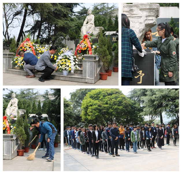 绿树环绕,松柏满园,烈士陵园内一片肃穆,师生们细心清扫着墓园。在大三学生的领学中,大一大二的95后们了解了向警予生平事迹,明白了要铭记历史,牢记时代使命,努力学习,勇担时代重任。